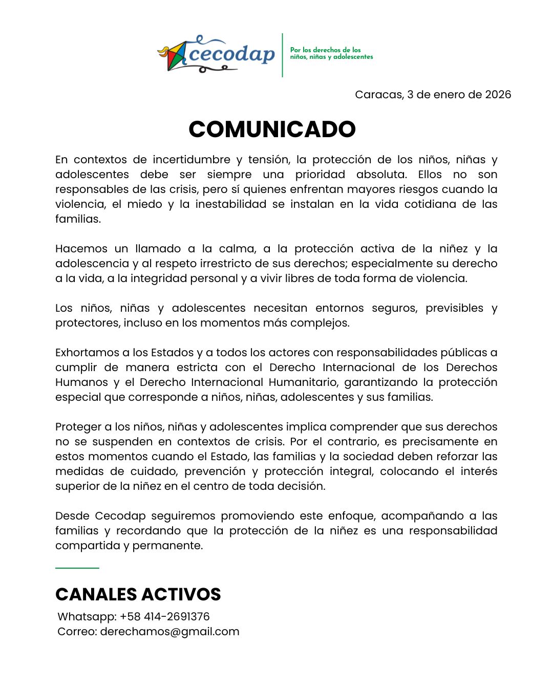 Desde Cecodap seguiremos promoviendo este enfoque, acompañando a las familias y recordando que la protección de la niñez es una responsabilidad compartida y permanente.